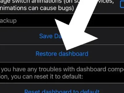 Blättere etwas nach unten bis zum Menüpunkt “Restore Dashboard”